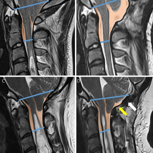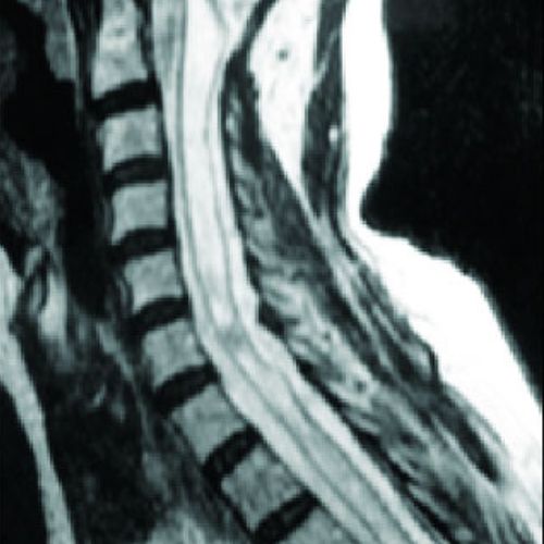 Compresión crónica de la médula espinal. Provoca alteraciones motoras, debilidad, pérdida de sensibilidad, problemas de coordinación, dolor cervical y afectación progresiva de la función neurológica.